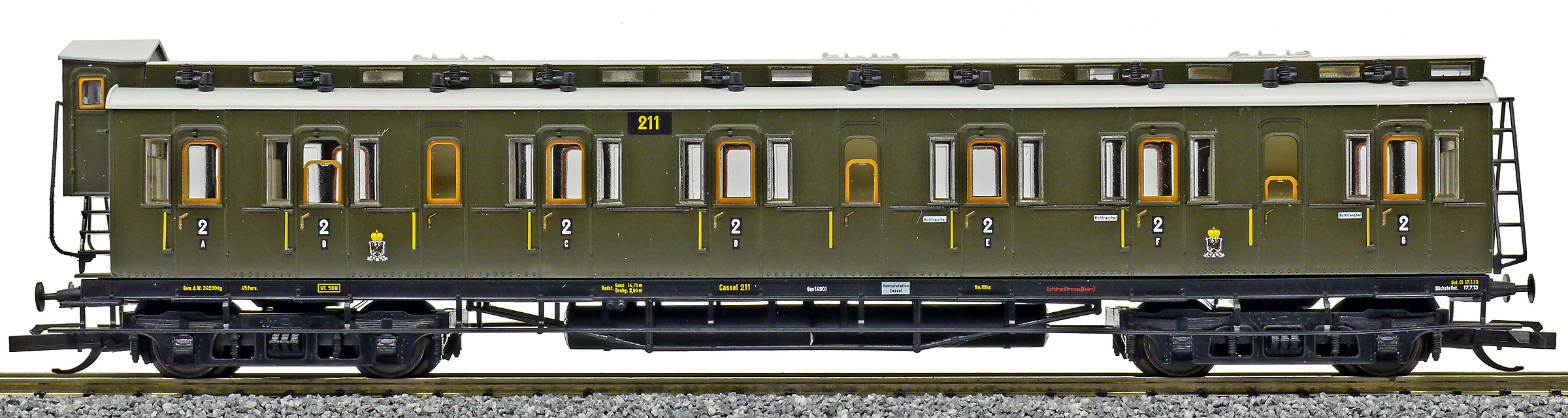 | oddílový osobní vůz tmavě zelený 2. tř. |