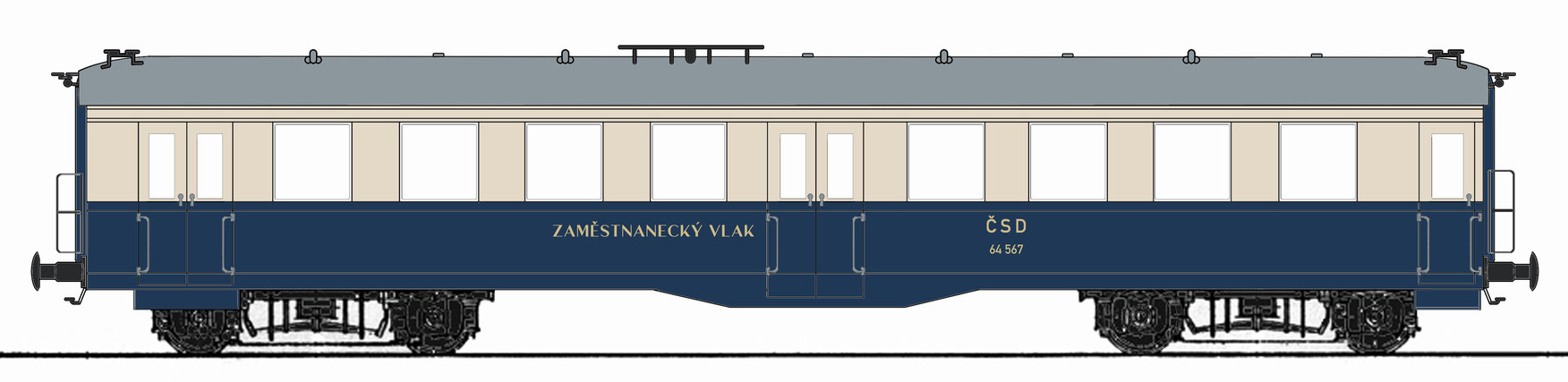 | osobních vůz modrý-slonová kost s šedou střechou „ZAMĚSTNANECKÝ VLAK“ |