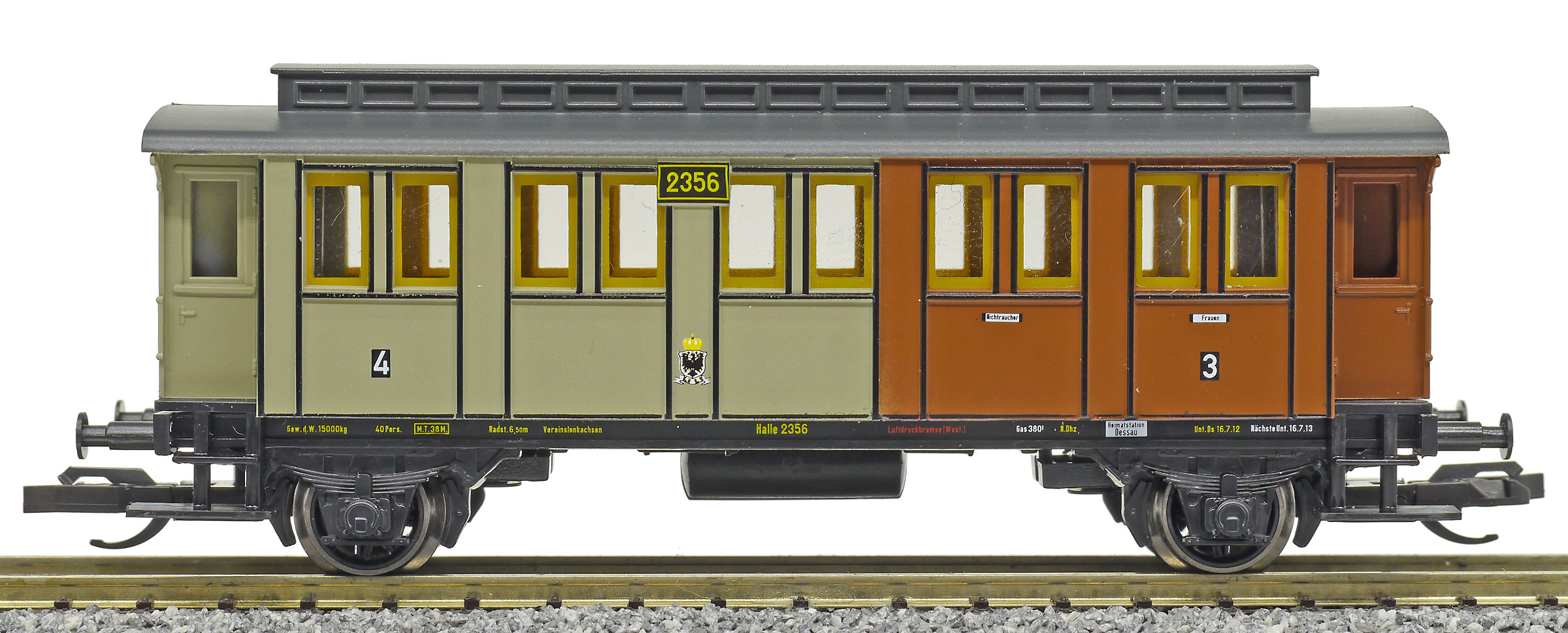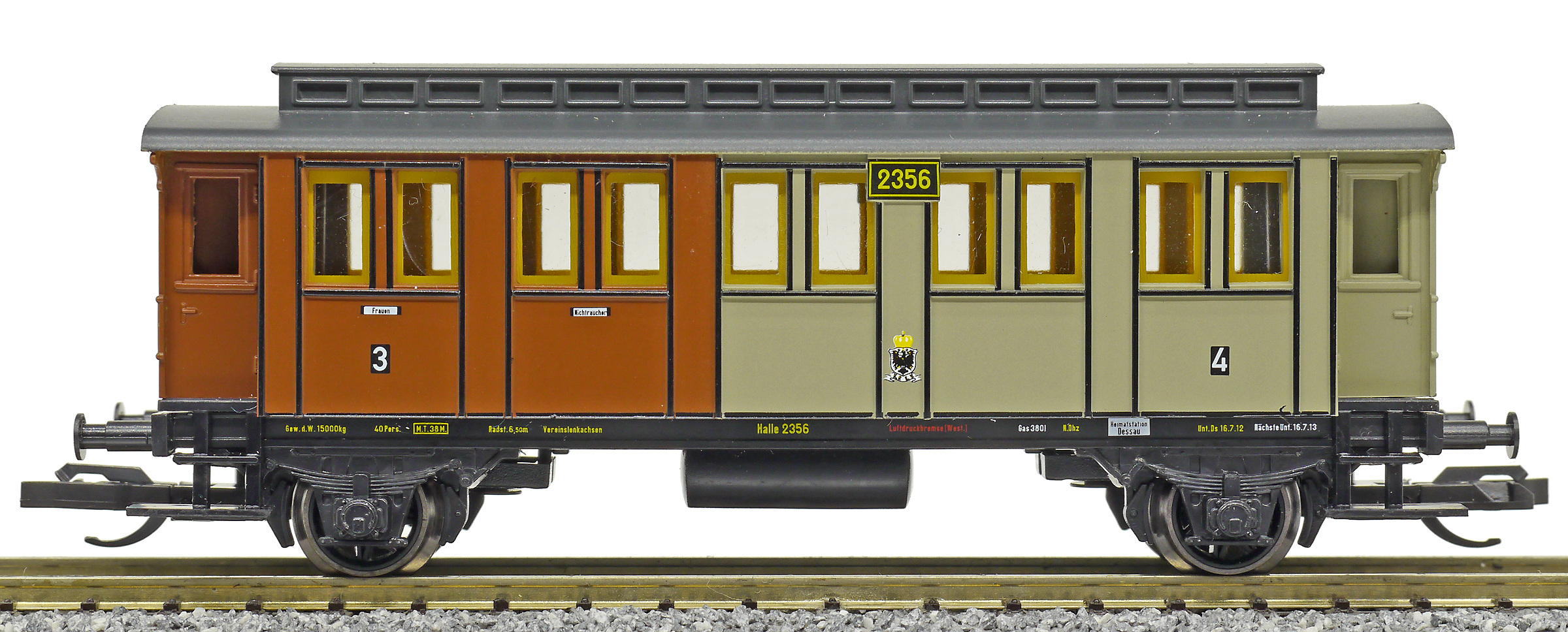 | osobní vůz červený-šedý s černou střechou 3./4. tř. |