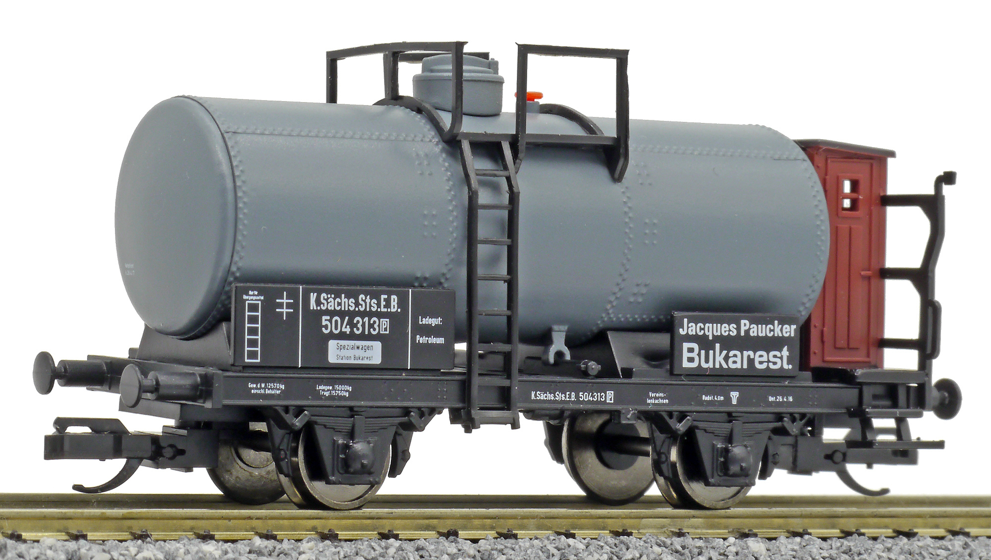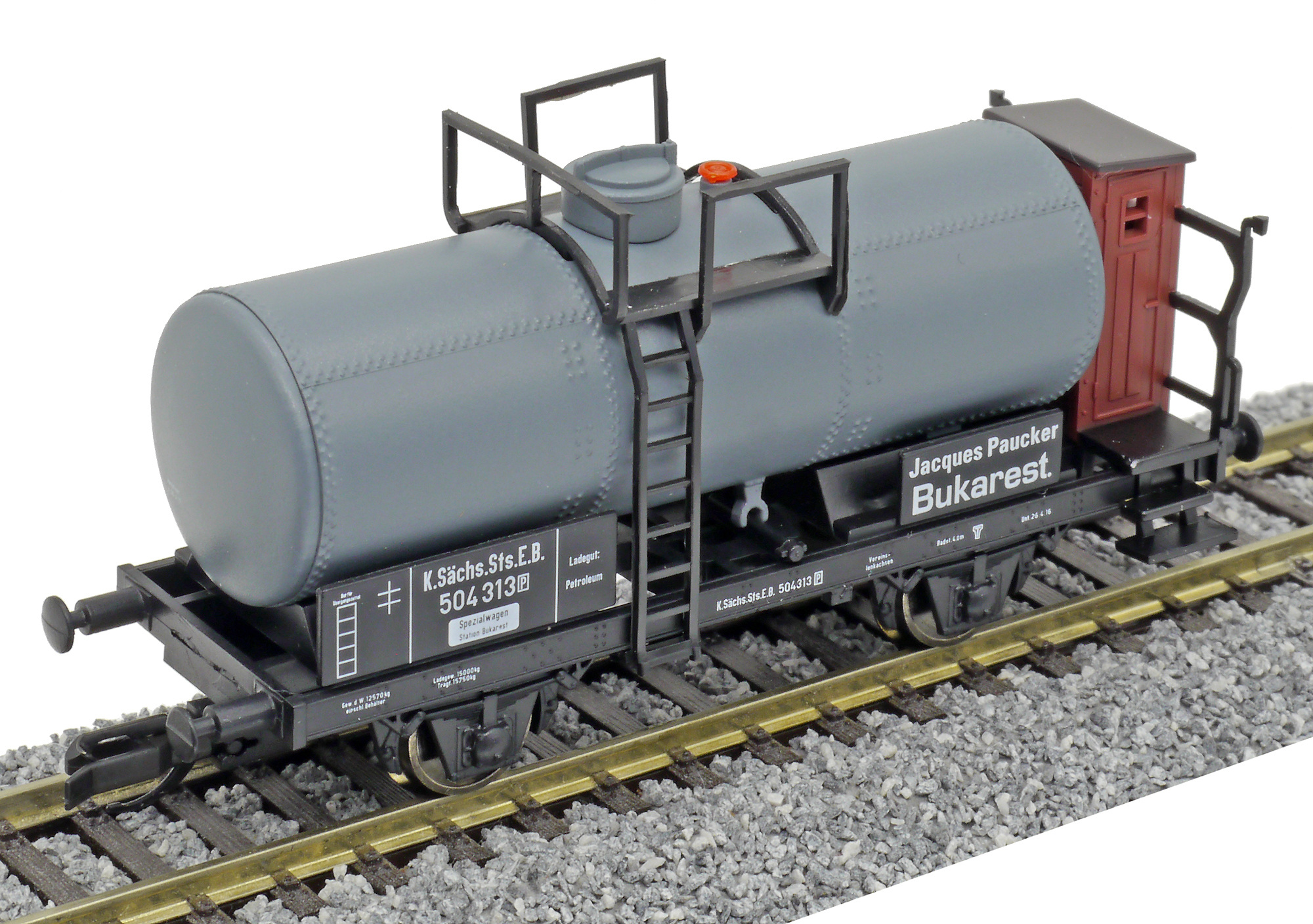 | kotlový vůz tmavý s brzdařskou budkou „Jacques Paucker, Bukarest“ |