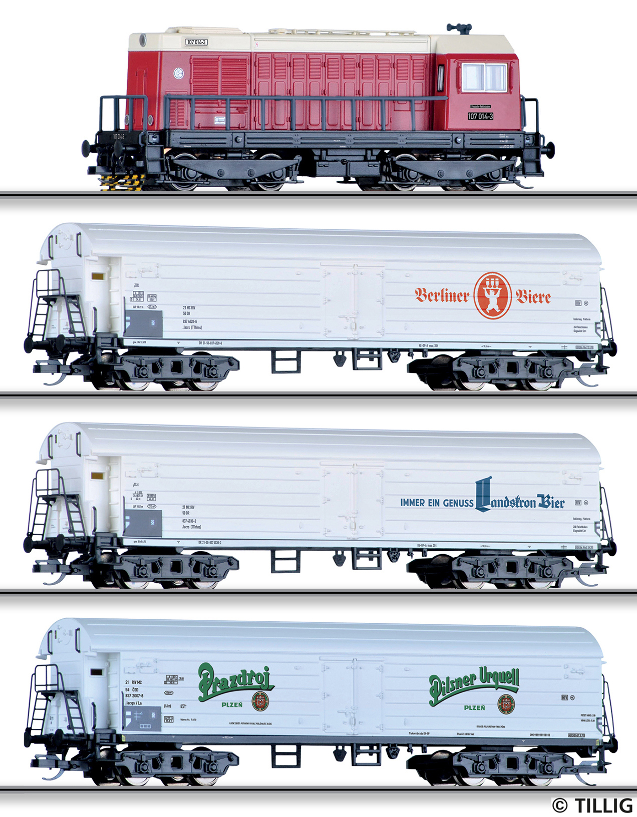 | set dieselové lokomotivy a tří chladících vozů „75 Jahre Nenngröße TT“ |