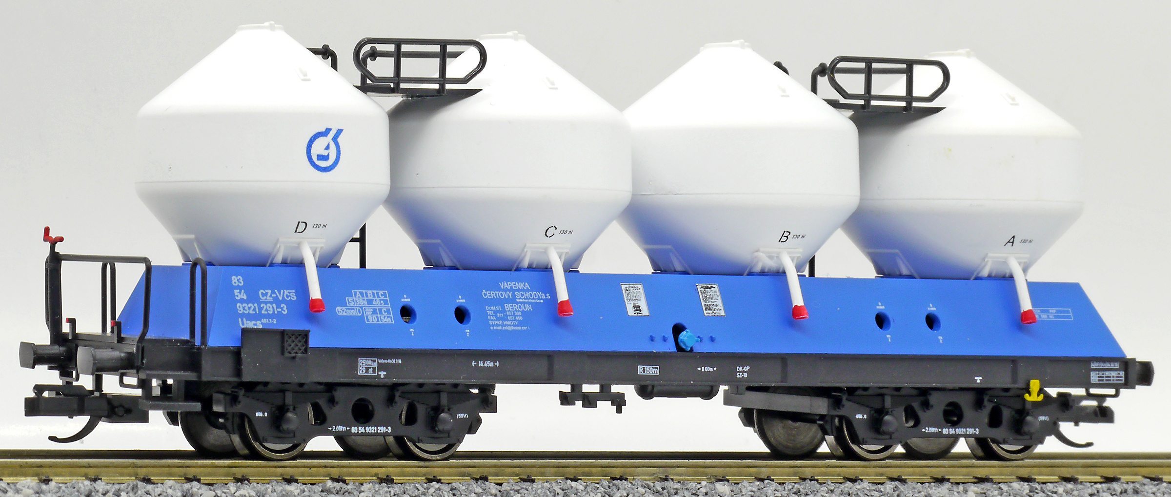 | nákladní samovýsypný vůz modrý s bílými nádobami „Vápenka Čertovy schody“ |