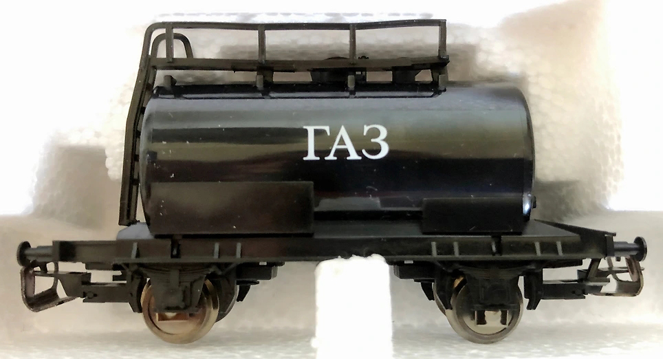 kotlový vůz černý s nápisem v azbuce „ГAЗ”