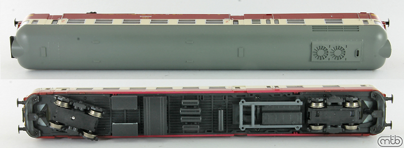 měřítko 1:120 - rozchod kolejí 12 mm osvětlení - 3 reflektory vpředu, 2 světla vzadu, přepínatelné podle směru jízdy 2 hnané nápravy 1 bandážovaná náprava vnitřní interiér vozu instalováno osvětlení interiéru kinematika krátkého spřáhla (KKK) podle normy NEM 358 digitální rozhraní podle NEM 658 s konektorem PluX16 208 mm - celková délka modelu přes nárazníky 4 - celkový počet náprav nebo rozložení náprav 160 g - hmotnost netto - pouze model
