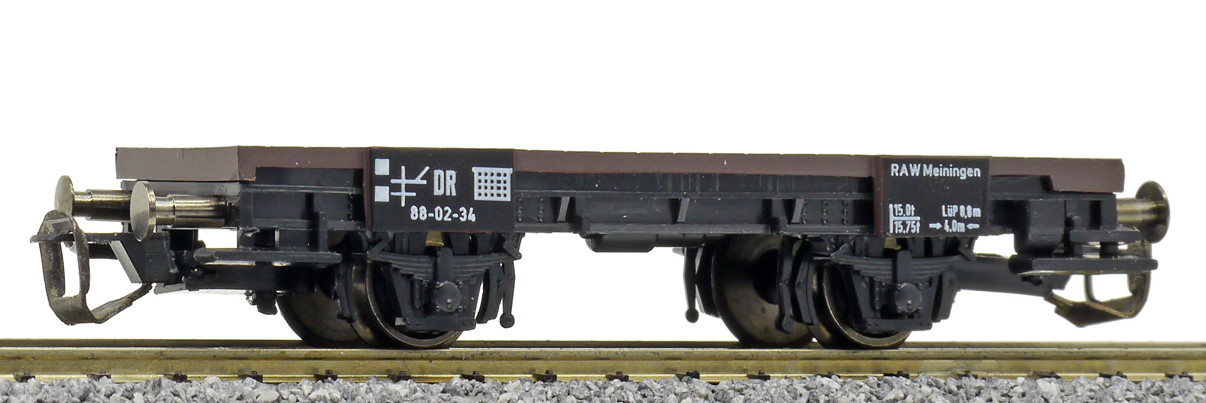 měřítko 1:120 - rozchod kolejí 12 mm kinematika krátkého spřáhla (KKK) podle normy NEM 358 75 mm - celková délka modelu přes nárazníky 2 - celkový počet náprav nebo rozložení náprav 36 g - hmotnost brutto - model včetně prodejního obalu 16 g - hmotnost netto - pouze model