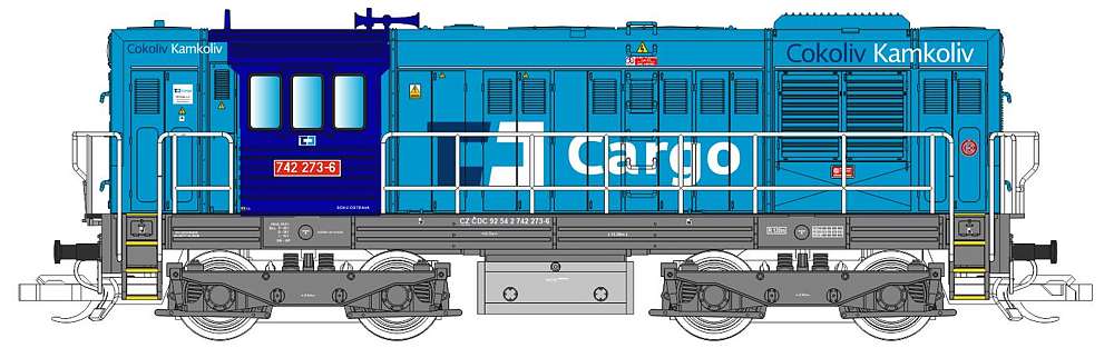| dieselová lokomotiva v barevném schematu „ČD Cargo“ |