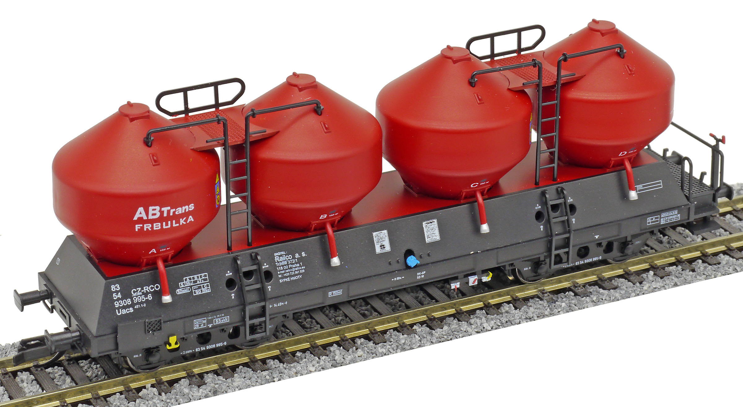 | nákladní samovýsypný vůz černý s červenými nádobami „ABTrans - FRBULKA“ |