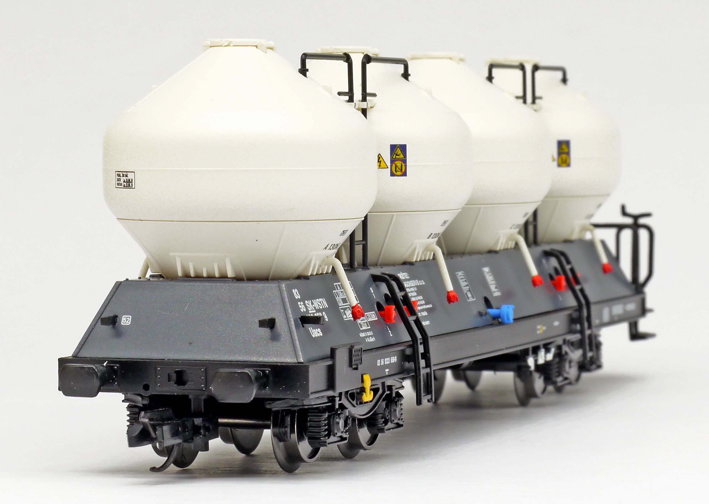 měřítko 1:120 - rozchod kolejí 12 mm kinematika krátkého spřáhla (KKK) podle normy NEM 358 120 mm - celková délka modelu přes nárazníky 4 - celkový počet náprav nebo rozložení náprav 70 g - hmotnost brutto - model včetně prodejního obalu