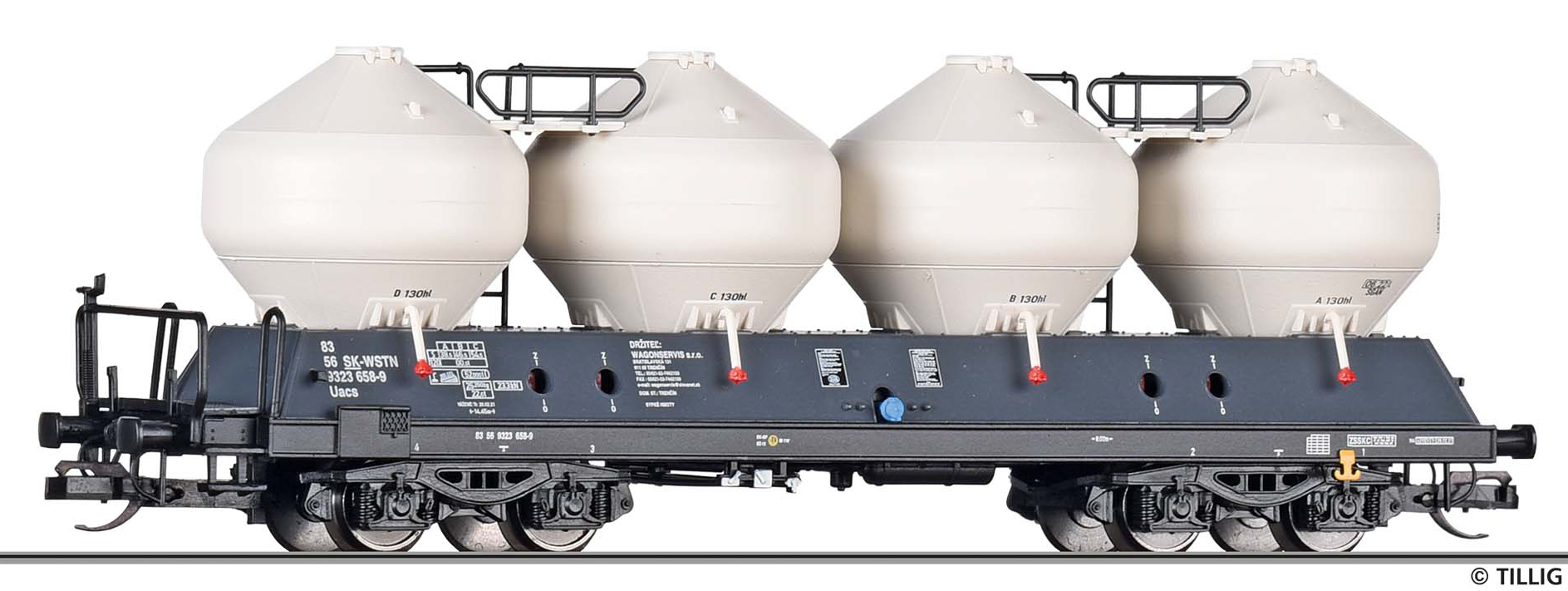 | • 83 56 9323 658-9 | → | nákladní, s podvozky, soukromý vůz, pro mezinárodní dopravu dle zvláštních úmluv |
