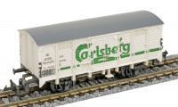 | krytý nákladní vůz bílý s šedou střechou „Carlsberg“ |