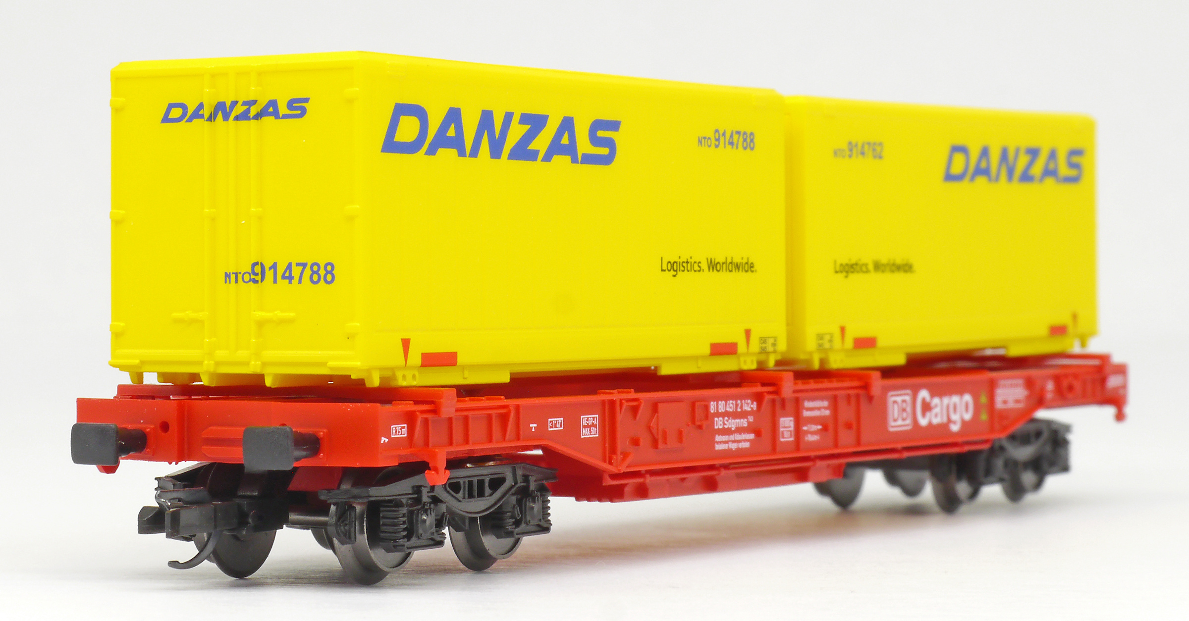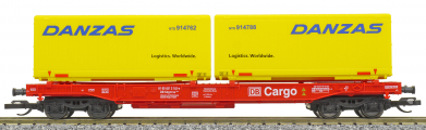 | kapsový nákladní vůz červený se dvěma výměnnými kontejnery „Danzas“ |