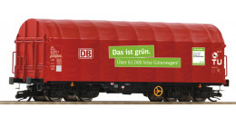 | nákladní plošinový vůz s odsuvnou plachtou s reklamním potiskem „Das ist grün“ |
