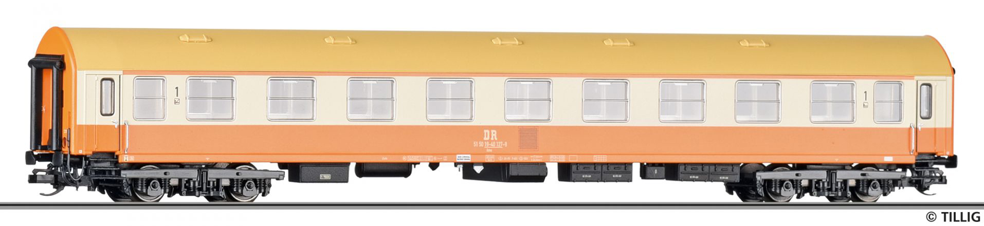 | rychlíkový vůz v barevném schematu „Städteexpress“ 1. tř. |
