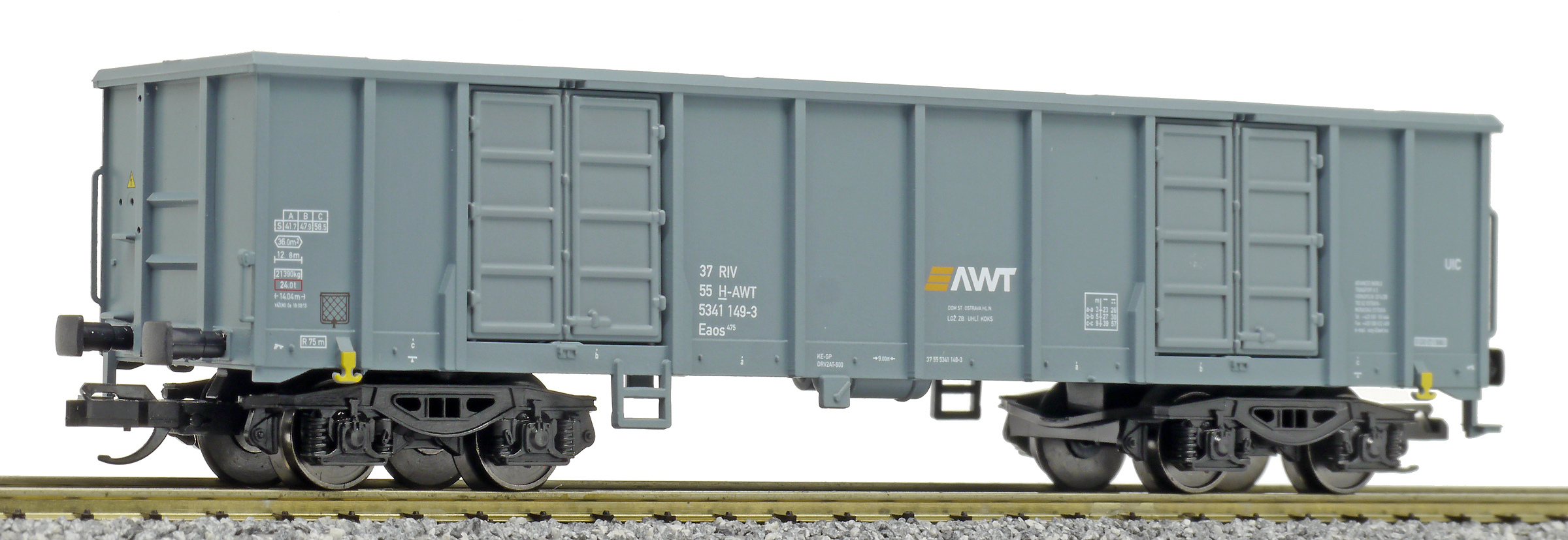 měřítko 1:120 - rozchod kolejí 12 mm kinematika krátkého spřáhla (KKK) podle normy NEM 358 120 mm - celková délka modelu přes nárazníky 4 - celkový počet náprav nebo rozložení náprav 130 g - hmotnost brutto - model včetně prodejního obalu 27 g - hmotnost netto - pouze model