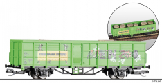 | otevřený nákladní vůz zelený „Mein Zoo“ s nákladem balíků sena |