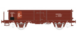 | otevřený nákladní vůz červenohnědý s opravami laku ložený šrotem |
