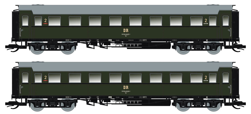 | oddílový osobní vůz zelený s šedou střechou 2. tř. |