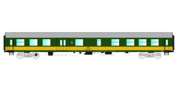 | rychlíkový vůz zelený se žlutým pruhem a šedou střechou 2. tř. |