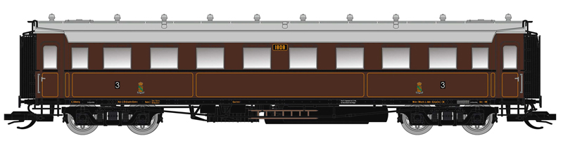 | osobní vůz hnědý s šedou střechou 3.tř. |