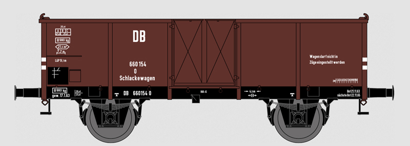 | otevřený nákladní vůz červenohnědý na přepravu strusky s nákladem |