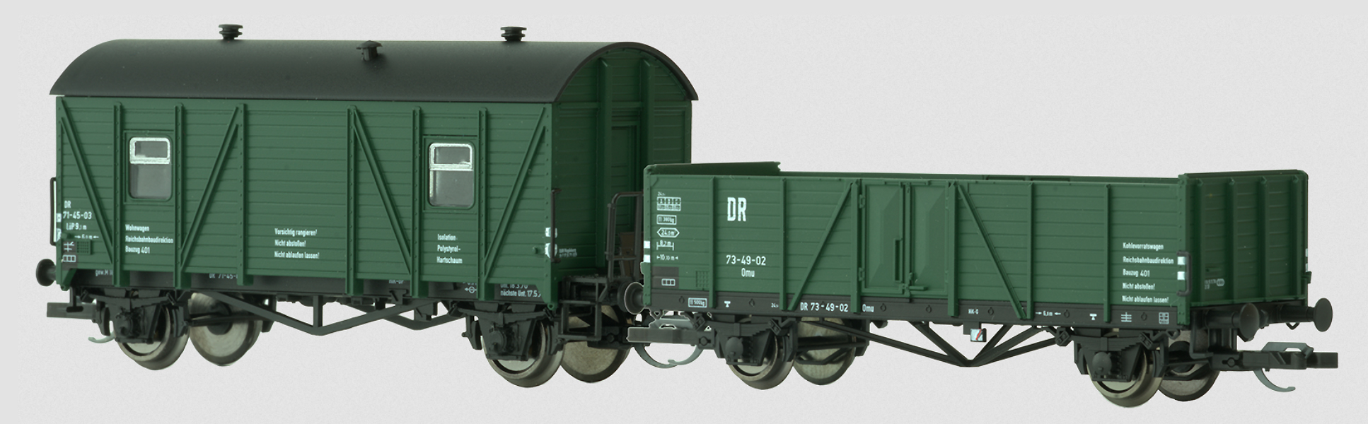 | set dvou vozů do stavebního vlaku - obytného vozu a nákladního vozu na uhlí |