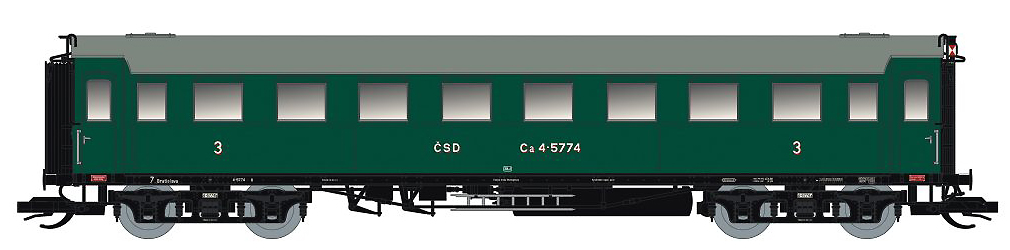 | oddílový osobní vůz zelený s šedou střechou 3. tř. |