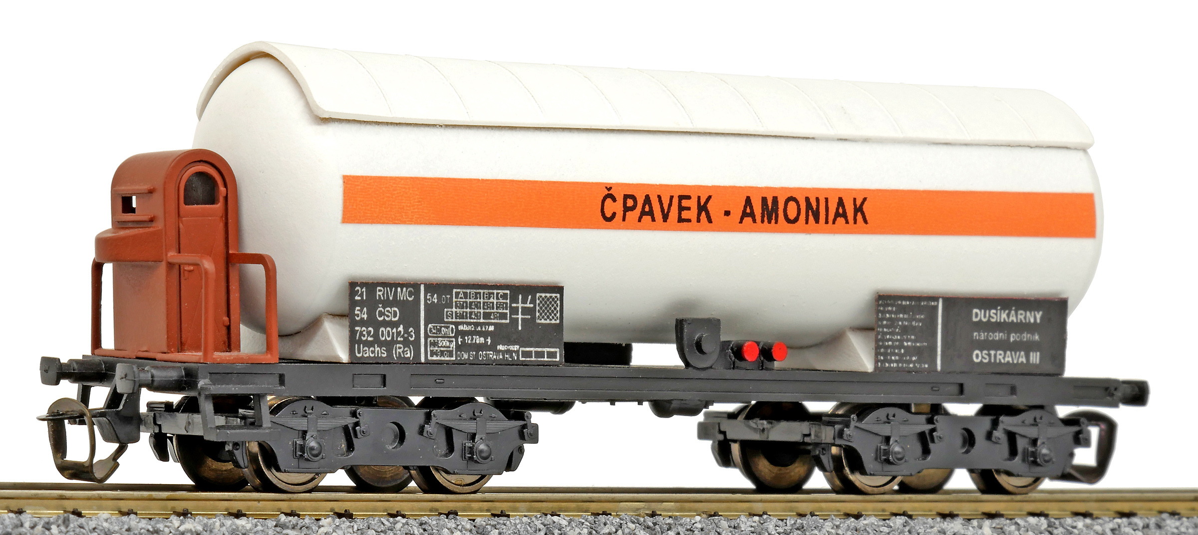 | kotlový vůz bílý se sluneční clonou a s brzdařskou budkou „ČPAVEK-AMONIAK“ |