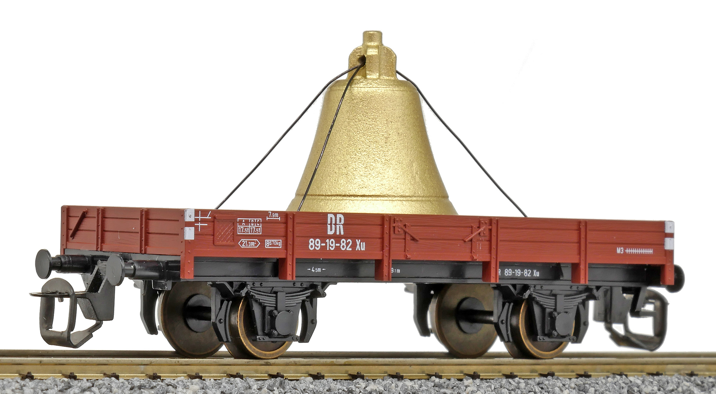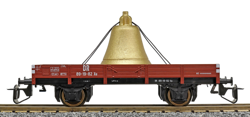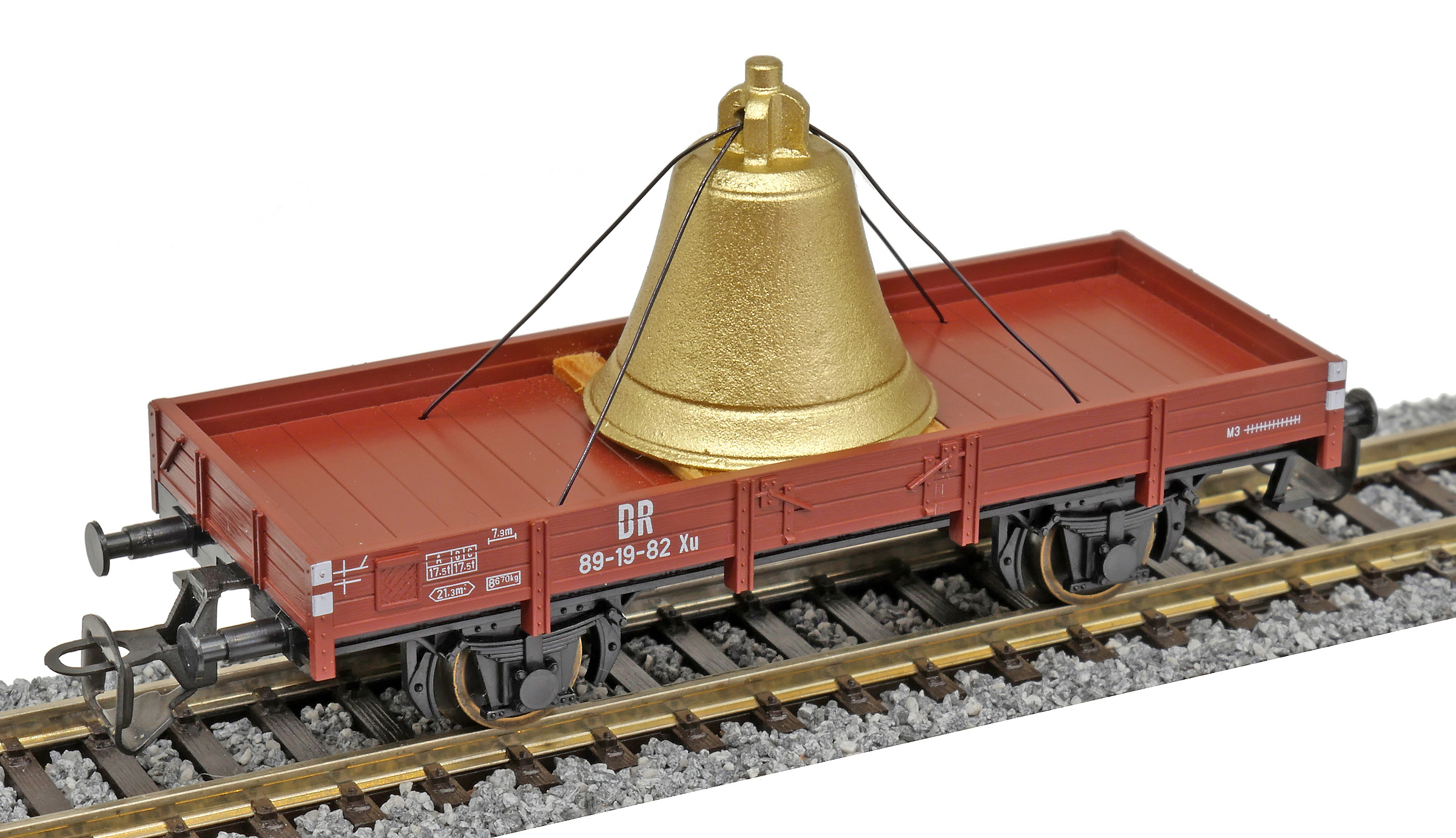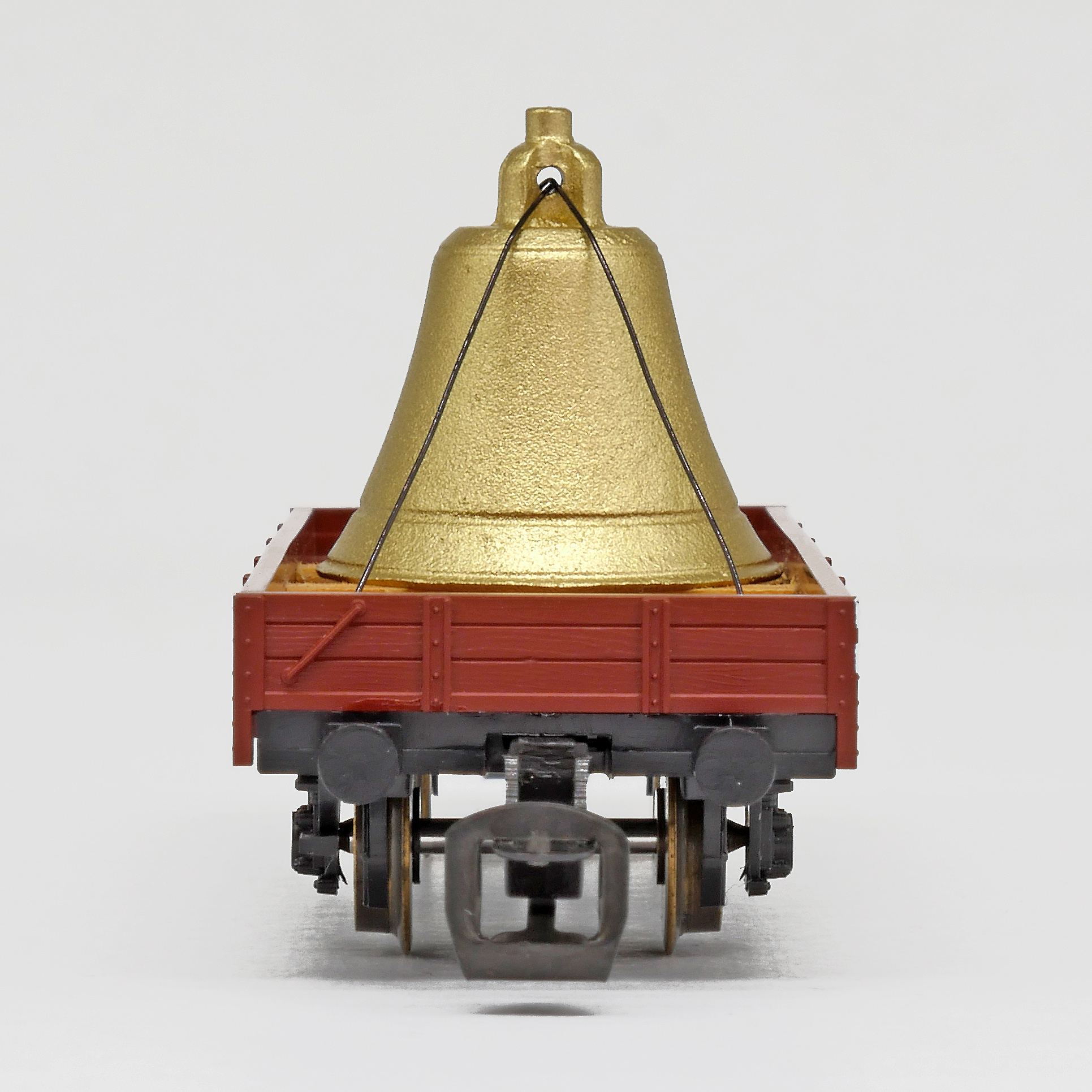 | nízkostěnný nákladní vůz červenohnědý s nákladem zvonu |