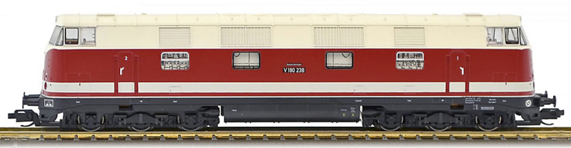 Kód   02660  [Lokomotivy] → [Motorové] → [V 180 (BR 118)] → 02660: dieselová lokomotiva červená-krémová se dvěma krémovými pruhy