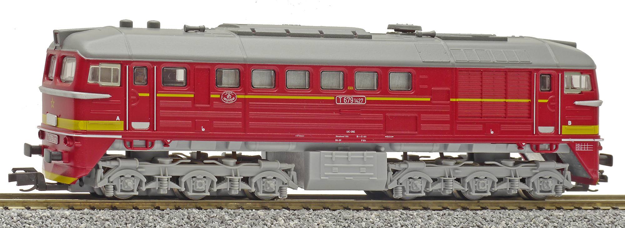 měřítko 1:120 - rozchod kolejí 12 mm osvětlení - 3 reflektory přepínatelné podle směru jízdy osvětlení - žárovky 4 hnané nápravy 2 bandážované nápravy nenormované uchycení spřáhla digitální rozhraní podle NEM 651 s konektorem 6pin 147 mm - celková délka modelu přes nárazníky 6 - celkový počet náprav nebo rozložení náprav 235 g - hmotnost brutto - model včetně prodejního obalu 200 g - hmotnost netto - pouze model