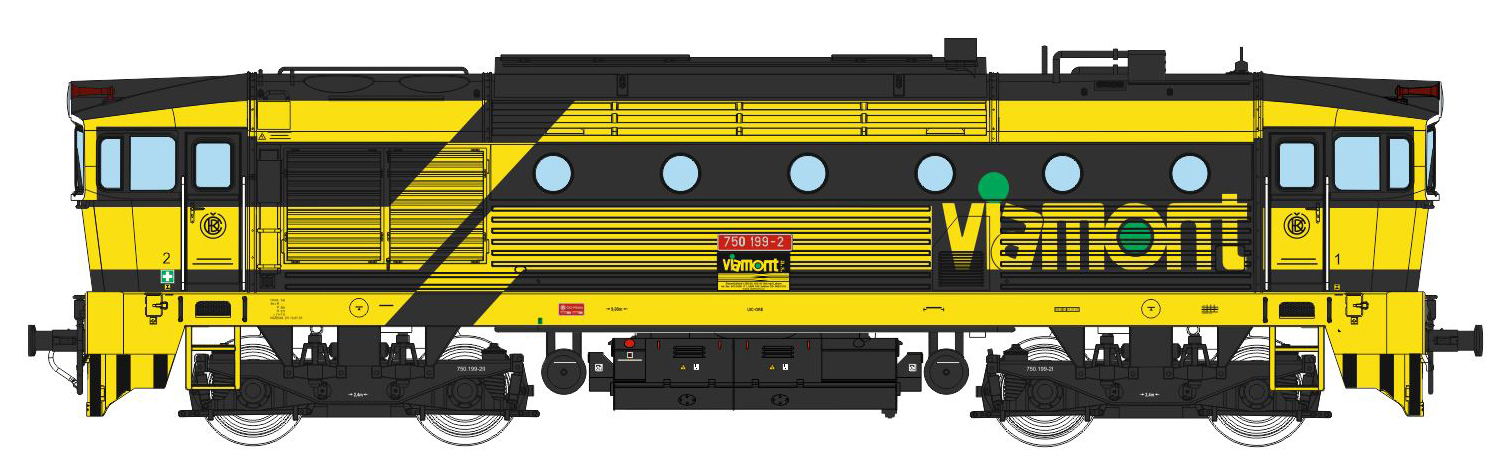| dieselová lokomotiva v barevném schematu „Viamont“ |