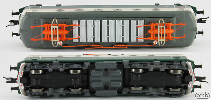 Kód   2313  [Lokomotivy] → [Elektrické] → [E499.0] → 2313: elektrická lokomotiva zelená-hráškově zelená s šedou střechou