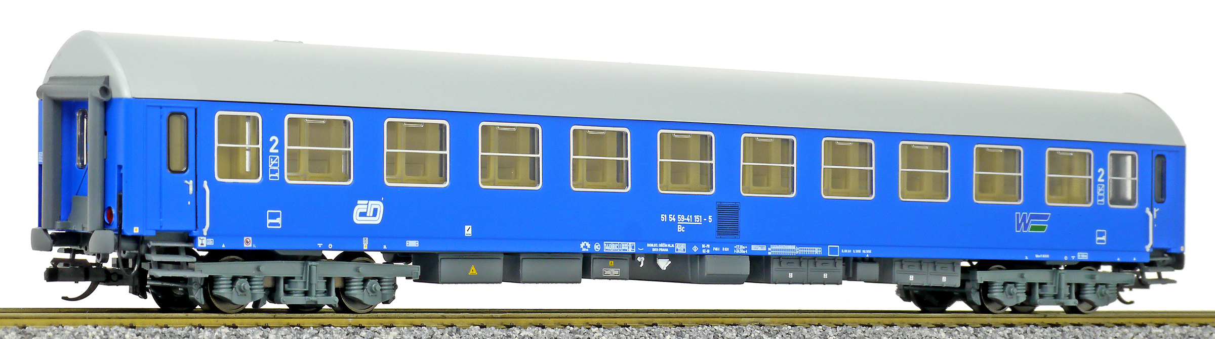 | lehátkový vůz modrý se světle šedou střechou 2. tř. |