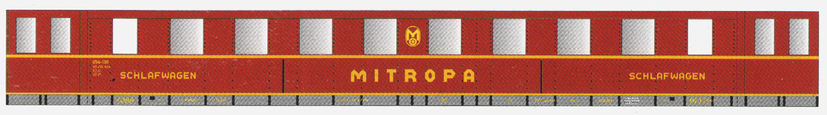 | lůžkový vůz červený se stříbřitou střechou „MITROPA“ |