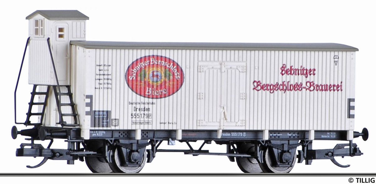 | chladicí vůz bílý s šedou střechou „Bergschloss-Brauerei Sebnitz“ |
