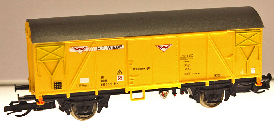 | žlutý se stříbrnou střechou „H.F. Wiebe“ |