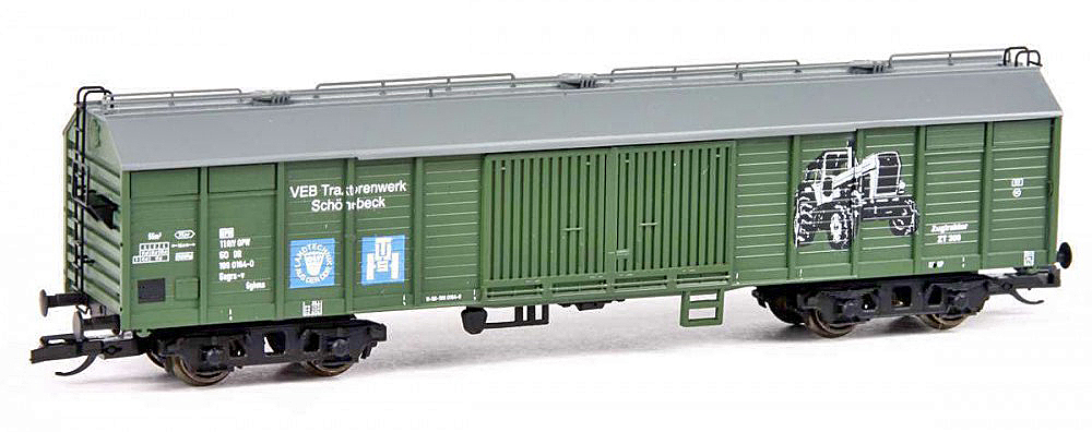 | krytý vůz zelený s šedou střechou „Traktorenwerk“ |