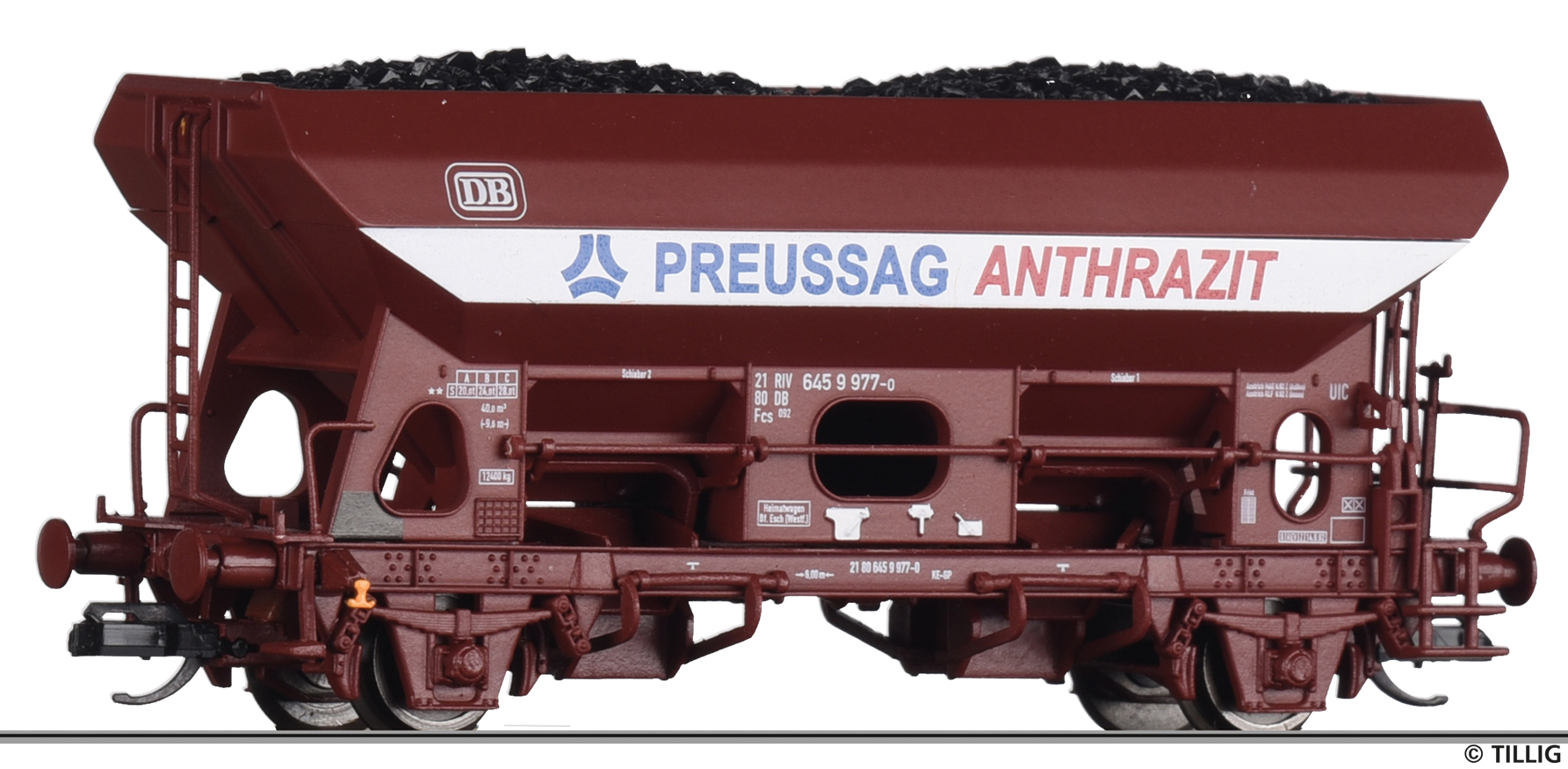 | nákladní samovýsypný vůz červenohnědý s nákladem uhlí „PREUSSAG ANTHRAZIT“ |