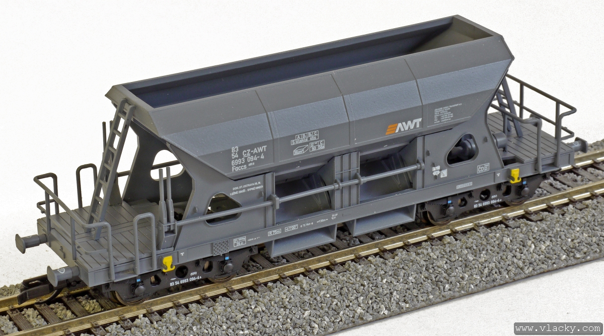 | nákladní samovýsypný vůz šedý s logem „AWT“ |