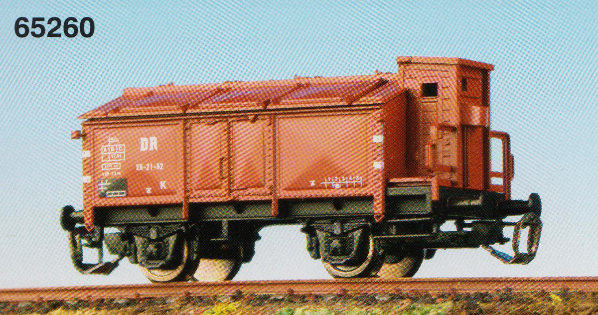 otevřený nákladní vůz červenohnědý s brzdařskou budkou