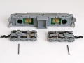 2.  Skříň lokomotivy je zajištěna nárazníky k pojezdu. Nárazníky vytáhneme a uvolněnou skříň opatrně sundáme.