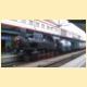 Parní lokomotiva posunuje v 9:20 za rychlík 780 stojící u 2. nástupiště |