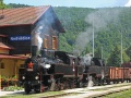 Příjezd parních vlaků byl načas podle jízdního řádu jako v sobotu. Ale jedna drobná změna tu byla. Parní vlak Sp 1673 od Havlíčkova Brodu v čele s lokomotivou 433.001 přijel uhlím napřed. Soupravy vozů byly stejně jako v sobotu odposunovány na nejvzdálenější manipulační kolej, ale obě parní lokomotivy poté posunovaly k nákladnímu vlaku. Někteří pobíhali po stanici dobře vybaveni grafikony a tak jsem se zeptal na další dění. Ve 12:25 měly obě lokomotivy odjet s manipulačním vlakem do následující stanice Rožná a v zápětí se zpět vrátit. Po 12. hodině se vykřižovaly ve stanici pravidelné spoje, také dnes byly vedeny zvláštními soupravami. Mezitím byla parní lokomotiva 423.009 doplněna na dýmnici velkou hvězdou a celá souprava se přesunula ke staniční budově. Jakmile byl mezistaniční úsek do Rožné volný a slunce nezakrývalo mraky, přišel pokyn a velká parní show mohla začít. Po odjezdu vlaku byl čas na malou polední svačinu. Obě parní lokomotivy se společně vrátily přibližně v 13:30. Času nebylo nazbyt a místo polední pauzy bylo opět nutné obě lokomotivy dozbrojit, vyčistit a namazat. Na tomto místě bych zdůraznil náročnost práce obou lokomotivních čet. Taková nostalgická jízda s parním vlakem, která pro nás začíná nástupem do vlaku a končí výstupem z vlaku, znamená především pro lokomotivní četu celodenní práci bez ohledu na počasí. Po 14. hodině se ve stanici křižovaly pravidelné spoje 14913 do Tišnova a 14912 do Žďáru nad Sázavou. Přprava parních lokomotiv na zpáteční jízdu se přece jen trochu protáhla a proto bylo rozhodnuto, že z časových důvodů nebudou soupravy obou vlaků posunovány na dopravní koleje. Odjezdy parních vlaků se tak uskuteční přímo z nejvzdálenější manipulační koleje. Nejdříve odjel v 14:50 parní vlak Sp 1675 ve směru do Brna. Druhý parní vlak ještě nebyl připraven, parní lokomotiva 433.001 teprve posunovala k soupravě vlaku. Klusal jsem tedy na druhou stranu stanice na zhlaví k přejezdu. Nečekané technické problémy zpozdily odjezd vlaku Sp 1674 do Havlíčkova Brodu až na 15:30. Zdržel jsem se ještě v okolí stanice na křižování pravidelných spojů 14917, 14916 po 16. hodině a 14923, 14920 po 18. hodině. Utichla i hudba od rybníka a letošní Slavnosti Pernštejnského panství skončily. Další informační zdroje: