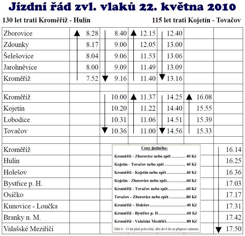 Plnou parou do Pohádkového lesa 22.5.2010130 let trati Hulín - Kroměříž a 115 let trati Kojetín - Tovačov