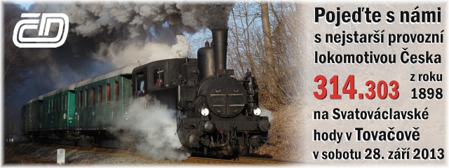 Nasazení parní lokomotivy 314.303 „Kocúr” na letošní jízdy do Tovačova bylo vskutku mimořádné. V původním rozpočtu nebyla parní lokomotiva plánována, ale díky podpory KCOD Olomouc a sponzorů se mohly tyto jízdy uskutečnit. Pro parní lokomotivu 314.303 „Kocúr” se jednalo o skutečně velký traťový výkon. Tato lokomotiva z roku 1898 byla primárně určená pro posunovací služby u Severní dráhy císaře Ferdinanda. Po vyřazení z provoz potom stála jako lokomotivní pomník ve stanici Valašské Meziříčí. Sice byla plánována její oprava do provozuschopného stavu, to se však podařilo po dlouhé době až v letech 2009 - 2011. Kromě několika prezentačních jízd ji bylo možné spatřit na trati z Valašského Meziříčí do Rožnova pod Radhoštěm a v loňském roce byla nasazena na Olomouckém Mikuláši. Na Svatováclavské hody v Tovačově byly z Kojetína vypraveny celkem tři páry parních vlaků. Jízdní doby byly volnější, protože vlak ve složený ze tří vozů Ci táhla parní lokomotiva 314.303 „Kocúr” bez postrku. Navíc parní lokomotiva potřebovala při každém obratu v Kojetíně i Tovačově dozbrojit vodou. Po prvním páru vlaků Os 31092/31093 během plánovaného pobytu v Kojetíně proběhlo i dozbrojení uhlím a jako bonus se uskutečnila malá fotojízda manipulačního vlaku za Kojetín formou PMD (posunu mezi dopravnami). Manipulační nákladní vlak ve složení parní lokomotiva 314.303 „Kocúr” + nákladní vůz Es s uhlím + služební vůz Da-k posunoval až za vjezdové návěstidlo a při následném vjezdu do Kojetína byly uskutečněny tři fotozastávky. Jízda takového netradičního parního vlaku a navíc bez postrku přilákala pochopitelně velké množství příznivců železnice, z nichž mnozí se jízd na tovačovské trati zúčastňují pravidelně. Předpověď počasí slibovala slunečný den, ovšem zrovna v okolí Kojetína i Tovačova mě cestou z Vysočiny přivítala mlha, která se začala pomalu přikrádat cestou už od Vyškova. Ráno v Kojetíně už probíhala příprava parní lokomotivy k jízdě a kvůli nízkým teplotám začala mlha navíc namrzat. Jízdu prvního páru zvláštních parních vlaků Os 31092/31093 jsme si nemohli přes velmi špatnou viditelnost vůbec vychutnat. Naštěstí těsně před malou fotojízdou se počasí umoudřilo a odpolední jízdy zvláštních parních vlaků nám ráno bohatě vynahradily. Další informační zdroje: