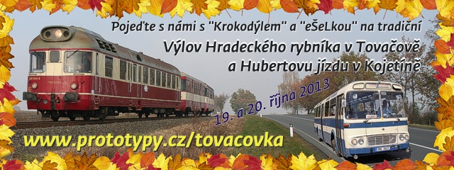 Také letos bylo možné se během víkendu zúčastnit dalších doprovodných akcí. Kromě letošního posledního svezení se na trati Kojetín - Tovačov bylo možné se také v sobotu zastavit v Kojetíně a zúčastnit se Hubertovy jízdy. Během soboty byla v provozu zvláštní autobusová linka Tovačov vlakové nádraží - Bolelouc náves/Troubky kostel. Na této autobusové lince jezdil historický autobus ŠL11 z roku 1978. Po celý víkend byly na trati Kojetín - Tovačov plánovány jízdy zvláštních vlaků ve složení motorový vůz M286.0044 „Krokodýl” dvou přívěsných vozů Bix. Ve srovnání s minulým rokem byl trochu redukován počet jízd o jeden pár denně, tedy celkem bylo odježděno 6 párů vlaků každý den. Letošní jízdy začínaly v Kojetíně prvním spojem Os 76216 (vlak 001) v 8:10 a končily tamtéž po příjezdu posledního Os 381990 v sobotu v 17:15 (vlak 012) a v neděli o něco později v 17:50 (vlak 014). V minulém roce byl jízdní řád koncipován obdobně, ale výchozím bodem jízd byl Tovačov. Během obou víkendových dní byla v Tovačově vystavena lokomotiva T444.1516 „Karkulka”, která má momentálně svůj domov v remíze na vlečce Toposu. Tato lokomotiva byla zařazena na konec jako postrk na posledním sobotním vlaku Os 281990 (vlak 011) s odjezdem v 16:10 z Tovačova. Celá souprava nocovala v tomto složení v Kojetíně a na prvním ranním nedělním spoji Os 76217 (vlak 002) s odjezdem v 8:50 jela jako vlaková lokomotiva. Pro návštěvu Tovačovky jsem měl původně vyhrazenu sobotu, ale z jiných důvodů jsem vynechal jízdu prvního ranního páru Os 76216 (vlak 001)/Os76217 (vlak 002). Předpověď na tyto podzimní dny slibovala slunečné počasí a kupodivu bez v tomto kraji pravidelných podzimních mlh. V neděli jsem původně návštěvu Tovačovky neplánoval, ale protože jsem se během dopoledne ocitl v Olomouci a ranní pošmourná obloha se začala protrhávat, neváhal jsem a na Tovačovku jsem dorazil až při polední pauze. Dokumentace nedělních jízd zvláštních vlaků tak začíná až spojen Os 376216 (vlak 007) s odjezdem v 13:25 z Kojetína. Po příjezdu posledního vlaku Os 281990 (vlak 011) do Tovačova byly z vlaku odvěšeny oba přívěsné vozy Bix a lokomotiva T444.1516 „Karkulka” s nimi posunovala na vlečku Toposu. Poslední vlak Os 381990 (vlak 014) s odjezdem v 17:30 z Tovačova byl tak veden sólo motorovým vozem M286.0044 „Krokodýl”. O zdárný průběh celé akce se starali členové občanského sdružení Kroměřížská dráha (KMD). Ve vlacích bylo také možné zakoupit drobné propagační materiály. Vozbu vlaků zajistily po oba dny hnací vozidla Klubu přátel kolejových vozidel Brno (KPKV). Motorový vůz M286.0044 „Krokodýl” přijel v sobotu časně ráno z Brna dolní n. jako Os 124590/Os 104029 a v neděli po akci opět odjel do Brna jako Os 100742/Os 121992/Os 124593. Lokomotiva T444.1516 „Karkulka” a dva vozy Bix přijely do Tovačova z nedaleké vlečky Toposu. Těmito podzimními jízdami pro letošní rok skončil bohatý provoz zvláštních vlaků na Tovačovce. Další informační zdroje: