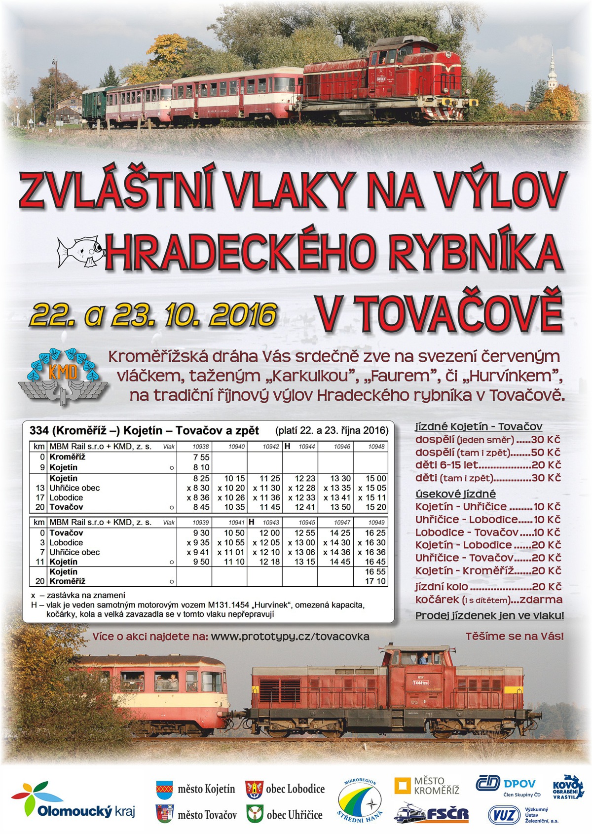 Zvláštní vlaky na výlov Hradeckého rybníka v Tovačově 22. a 23.10.2016