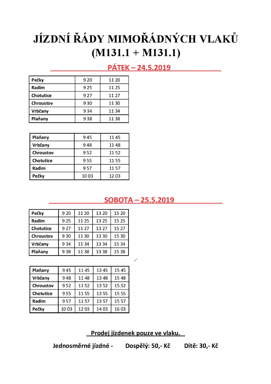 Zvláštní vlaky v okolí Peček 24. - 26.5.2019