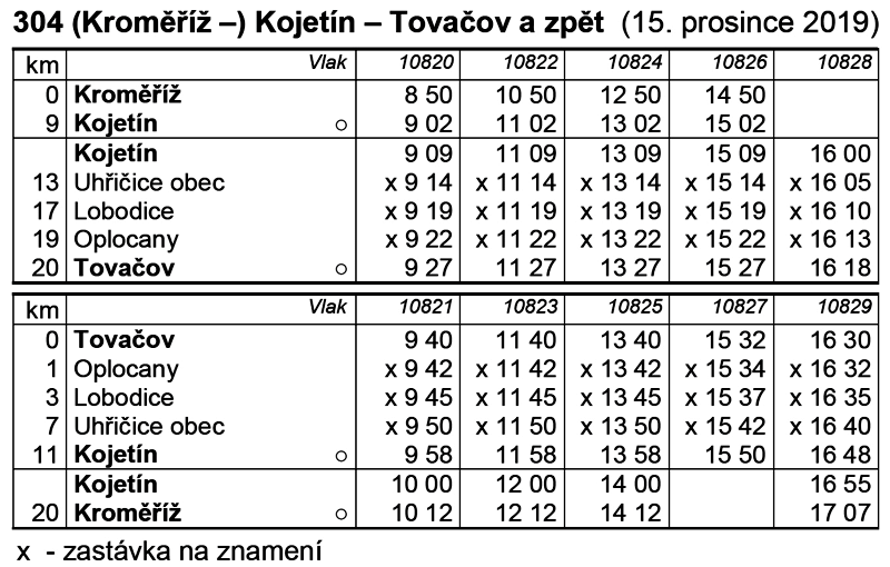 Os 10828 odjíždí v 16:00 z Kojetína |