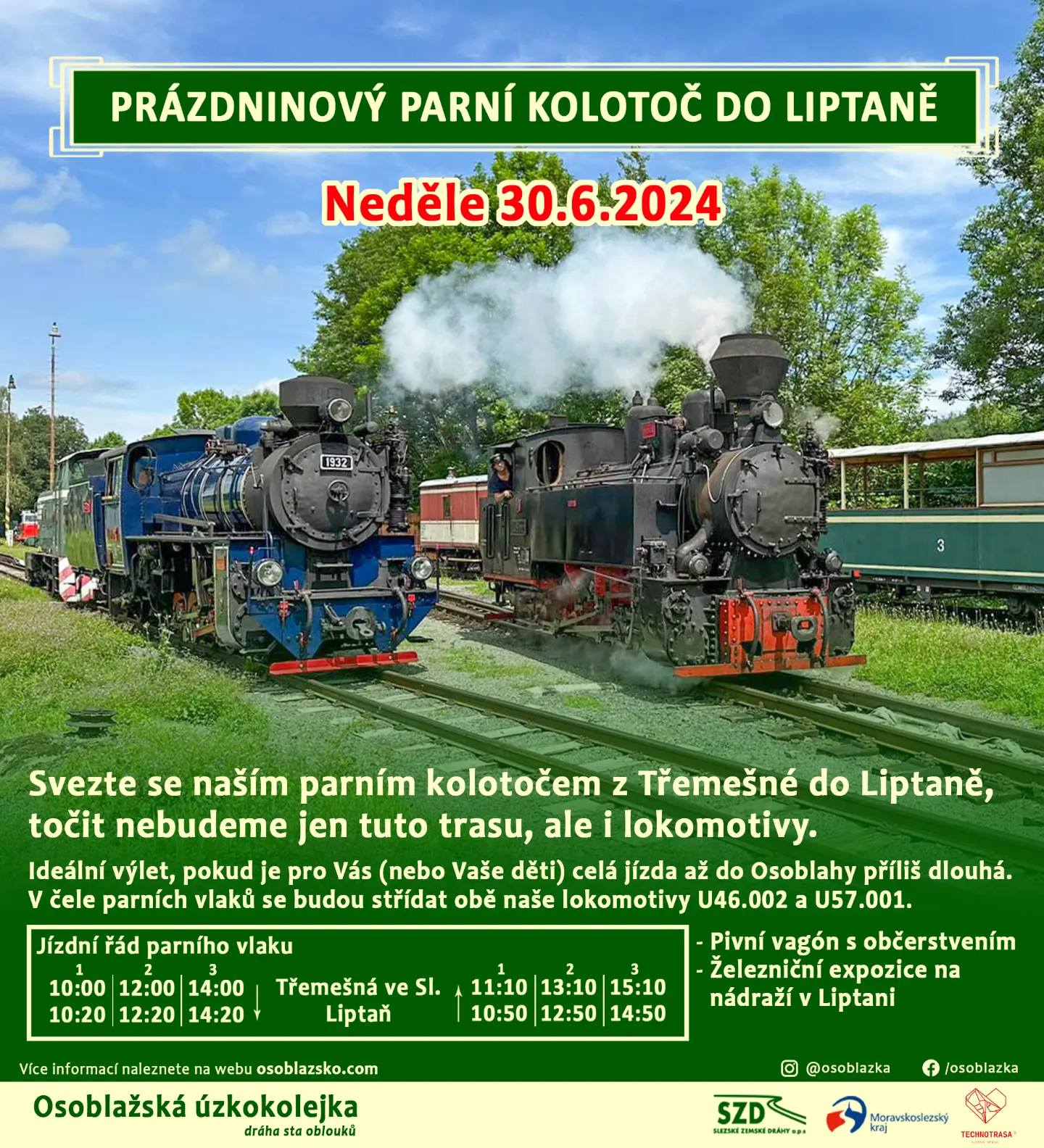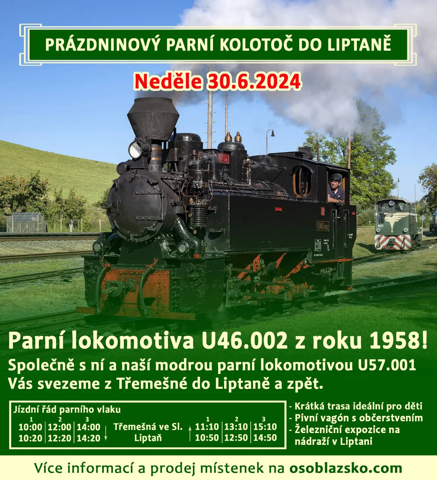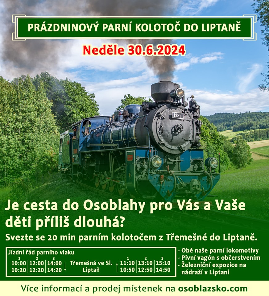 Prázdninový parní kolotoč do Liptaně 30. 6. 2024